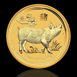 Инвестиционна златна монета Австралийски Лунар – Година на Прасето (Year of the Pig) с тегло 1/10 унция и най-висока чистота на златото 999.9/1000 (24 карата). Тази емисия от 2019 г. е емблематична, тъй като е финалната, дванадесета монета от легендарната втора серия "Лунар" (Lunar Series II) на австралийския монетен двор Perth Mint. Прасето в китайския лунен календар е символ на добродушие, честност, щедрост и късмет. Поради ниския си тираж и статута си на „финална емисия“, монетата е обект на засилено търсене от страна на нумизматите по целия свят.