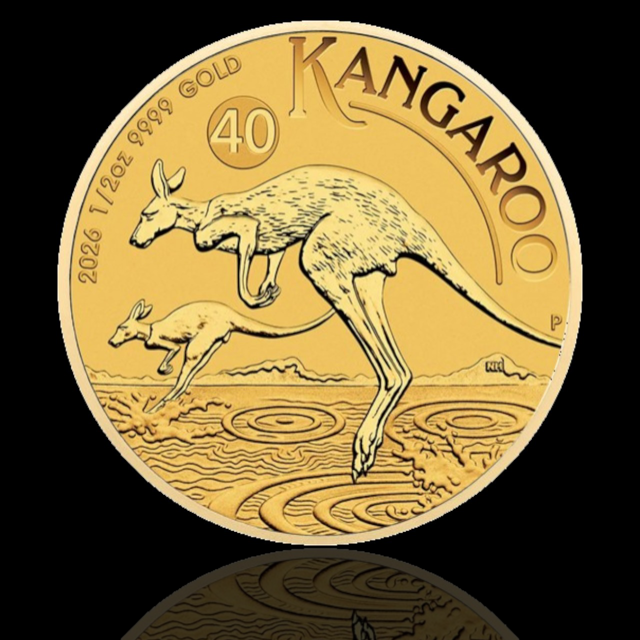 Емблемата и националният символ на Австралия – кенгуруто – е източник на вдъхновение в цялата едноименна колекция златни монети, предлагани от монетния двор в Пърт. Той се слави с най-висока възможна репутация сред световните монетни дворове. Торбестият бозайник е детайлно изобразен и на монетата от 1/2 унция злато от 2022-та година, като по традиция, на гърба й виждаме историческата икона за страната, Кралица Елизабет Втора.