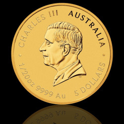 На аверса е представен официалният портрет на Негово Величество Крал Чарлз III, създаден от Дан Торн. Около него са разположени надписите, обозначаващи теглото, чистотата, номиналната стойност от 5 AUD и статута на монетата като законно платежно средство на Австралия.