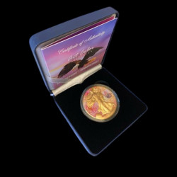 Инвестиционна сребърна монета Американски орел (American Eagle) с тегло 1 унция и чистота 999/1000, част от цветната колекция "Art Color – Четирите годишни времена". Това специално издание е посветено на Лятото – сезонът на разцвета, жизнената енергия и яркото слънце. Класическата фигура на американската нумизматика е преобразена чрез прецизна технология за цветно нанасяне, която добавя наситени златни, жълти и зелени нюанси. Монетата съчетава стабилността на сребърния орел с експлозия от летни цветове, превръщайки я в ценен и атрактивен екземпляр за всяка колекция. Лимитирана серия от 1000 броя.