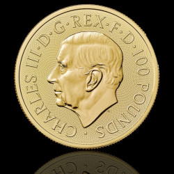 На лицевата страна е изобразен официалният портрет на крал Чарлз III, дело на скулптора Мартин Дженингс. Като законно платежно средство в Обединеното кралство, монетата има номинал от £100 и притежава характерната монетна изчистеност и елегантност.