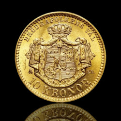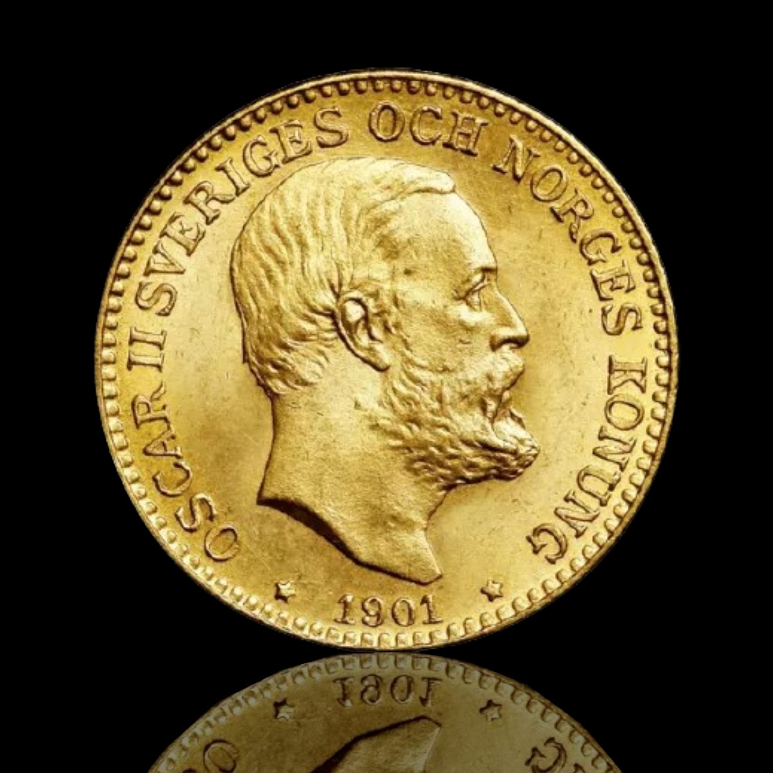 Инвестиционна златна монета с номинал 10 крони (Kronor), отсечена по време на управлението на шведския крал Оскар II (Oscar II) през 1901 г. Тези монети са важна част от скандинавската нумизматична история, отсечени по строгите стандарти на Скандинавския монетен съюз. Със своето чисто златно съдържание и исторически статус, те представляват отлична възможност за съхранение на капитал, съчетавайки стабилността на благородния метал с нумизматична стойност.