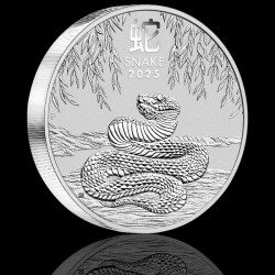 Внимателно изработена от 1000 грама чисто сребро с проба 99,99%, тази монета от Австралийската лунна серия III – 2025 Година на змията отбелязва шестото животно от лунния зодиак. Казва се, че всяко животно от лунния зодиак дарява своите доминиращи характеристики на родените по време на неговото управление. Шестият от 12-те благоприятни животински символа, змията, дарява мъдрост, интелигентност, независимост и чар на родените под нейно влияние през 2025, 2013, 2001, 1989, 1977 и всяка 12-та предходна година.