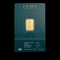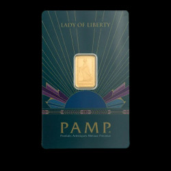Инвестиционно златно кюлче от 2.5 грама, произведено от световноизвестната швейцарска рафинерия PAMP (Produits Artistiques Métaux Précieux). Дизайнът от серията "Lady Liberty" изобразява Статуята на свободата – вечният символ на независимостта и надеждата. Кюлчето е изработено от най-висока проба чисто злато (.9999) и се доставя в оригинална сертификационна опаковка (CertiPAMP™), която гарантира неговия произход и автентичност. Компактният размер и безупречната репутация на производителя го правят идеален избор за дългосрочна инвестиция или изискан подарък.