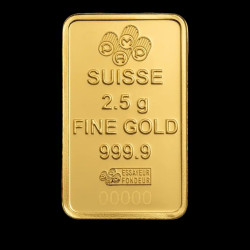 Задна страна: Съдържа логото на PAMP Suisse, теглото на продукта „2.5g“, чистотата на метала „GOLD 999.9“ и официалния печат на рафинерията („Essayeur Fondeur“). В долната част е гравиран уникалният сериен номер на кюлчето.