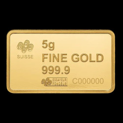 Задна страна: Съдържа официалното лого на PAMP Suisse, точното тегло на продукта „5g“, чистотата на метала „GOLD 999.9“ и маркировката на сертифицирания проверител („Essayeur Fondeur“). В долната част е гравиран уникалният сериен номер, който съвпада с този на сертификата.