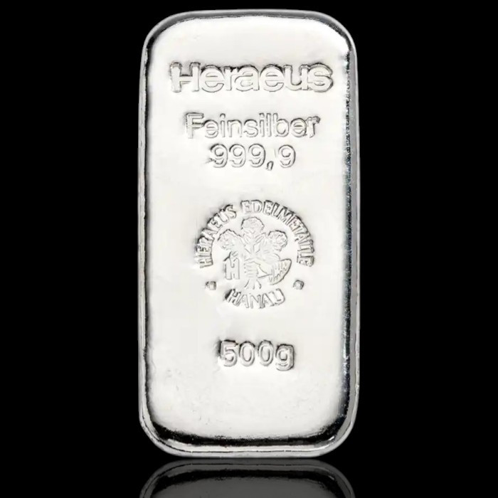 500 грама сребърно кюлче Heraeus