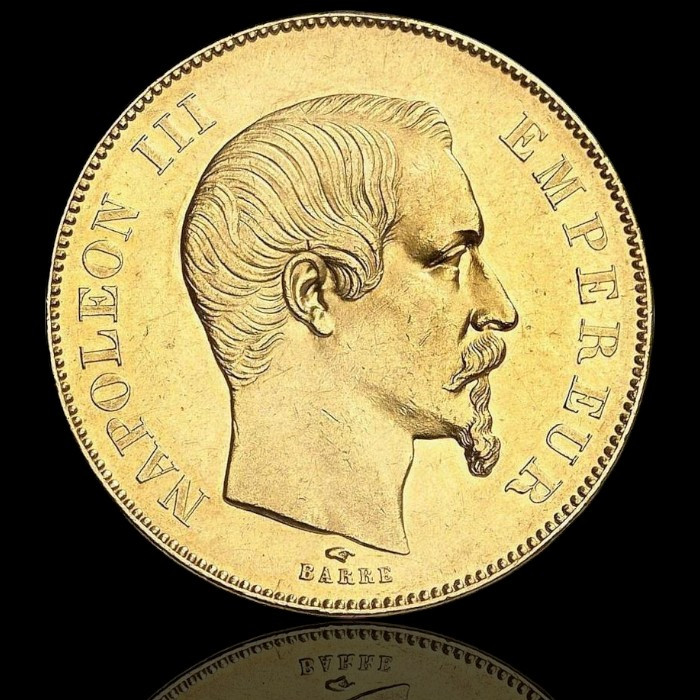Златната монета е сечена в периода 1855–1860 г. и първоначално е била предназначена за редовно парично обращение във Франция. Официално е демонетизирана на 25 юни 1928 г., което днес я превръща в ценен исторически и колекционерски обект, търсен както от инвеститори във физическо злато, така и от нумизмати.