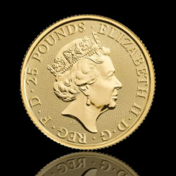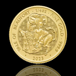 Инвестиционна златна монета с тегло 1/4 унция (7.78 грама) и чистота 999.9/1000, част от престижната серия „Кралските зверове на Тюдорите“ (The Royal Tudor Beasts) на Британския кралски монетен двор. Емисията за 2023 г. изобразява Козела от Бофорт (Yale of Beaufort) – митично създание, символ на отбраната и стабилността, което Хенри VIII наследява от своята майка, за да легитимира властта на династията Тюдор. Монетата съчетава изключително художествено майсторство с модерни защитни елементи.